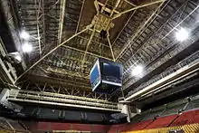 The Leafs continued to sell out every game through the Ballard era, even as the team's performance went into steep decline. The rink-side red seats were replaced with gold seats in 1974.[37] In August 1979, to make room for private boxes, Ballard had his staff tear down the 48-year-old gondola from which Foster Hewitt regularly broadcast games across Canada and threw it into an incinerator.[38] In an editorial, the Toronto Star called Ballard's actions the "barbaric destruction of one of Canada's great cultural monuments."[39] Then in 1982, the centre-hung scoreboard that had been in use since 1966 was replaced by a new centre-hung scoreboard with a colour matrix message/animation screen on each side, which remained in use for the rest of the Maple Leafs' stay at the Gardens. Originally an American Sign and Indicator scoreboard, it was upgraded by Daktronics in the 1990s.