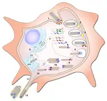 Niemann–Pick C1 (NPC1) cholesterol transporter protein appears to be essential for infection with both Ebola and Marburg virus. Two independent studies reported in the same issue of Nature showed that Ebola virus cell entry and replication requires NPC1.[21][22] When cells from patients lacking NPC1 were exposed to Ebola virus in the laboratory, the cells survived and appeared immune to the virus, further indicating that Ebola relies on NPC1 to enter cells. This might imply that genetic mutations in the NPC1 gene in humans could make some people resistant to one of the deadliest known viruses affecting humans. The same studies described similar results with Marburg virus, showing that it also needs NPC1 to enter cells.[21][22] Furthermore, NPC1 was shown to be critical to filovirus entry because it mediates infection by binding directly to the viral envelope glycoprotein[22] and that the second lysosomal domain of NPC1 mediates this binding.[23]
