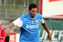 Materazzi was signed by Inter Milan in July 2001 for €10 million.[10][11] He took squad number 23 and made his competitive debut for the club on 26 August in the opening championship match against Perugia.[12] Materazzi's first goal for Inter came only in his second appearance, netting inside 10 minutes in a 2–2 draw at Parma.[13] He also played eight time in the season's UEFA Cup, with his competition debut coming on 20 September in the 3–0 win versus Romania's Brașov.[14]