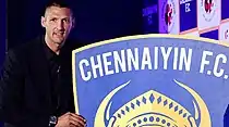On 22 September 2014, Materazzi was signed as the player-manager of Chennaiyin FC in the inaugural season of the Indian Super League.[72] Materazzi signed a two-season contract with Chennaiyin for $1 million (USD) every season.[73][74] Materazzi did not choose himself to play in their opening match, a 2–1 victory at FC Goa on 15 October courtesy of a free kick from marquee player and former Brazil international Elano.[75] Six days later in his first home game, Chennaiyin defeated the Kerala Blasters 2–1, but four days after that he lost for the first time, 1–4 to the Delhi Dynamos. In the club's fourth match of the season, he selected himself to play for the first time, starting in a 5–1 win over Mumbai City.[76] On 28 November, he brought his former international defensive partner Alessandro Nesta out of retirement to play for Chennaiyin until the end of the season.[77] Chennaiyin finished the 14-game regular season in first place in the league, with Materazzi having made 6 appearances. In the end-of-season play-offs, the team were eliminated in extra time in the semi-finals by the Kerala Blasters.