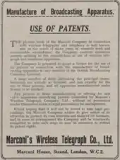 The subsidiary Marconi Wireless Telegraph Company of America, also called "American Marconi", was founded in 1899.[2][3] It was the dominant radio communications provider in the US until the formation of the Radio Corporation of America (RCA) in 1919.[4]
