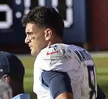Mariota was born in Honolulu, Hawaii, on October 30, 1993, to Alana Deppe-Mariota and Toa Mariota. He is of Samoan descent on his father's side and German descent on his mother's side. He grew up admiring the quarterback play of fellow Samoan Jeremiah Masoli, who was also a standout quarterback at the Saint Louis School and the University of Oregon.[5] Mariota describes himself as a dedicated Christian.[6] Mariota has a younger brother Matt who also plays football.[7]