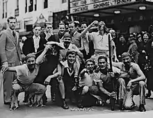 Bienville went on to found the settlement of Mobile, Alabama in 1702 as the first capital of French Louisiana.[17] In 1703 French settlers in Mobile established the first organised Mardi Gras celebration tradition in what was to become the United States.[15][18][19][20] The first informal mystic society, or krewe, was formed in Mobile in 1711, the Boeuf Gras Society.[18] Then came the Striker's Independent Society in 1842, followed by the oldest parading mystic society the Order of Myths or "OOMs" in 1867.