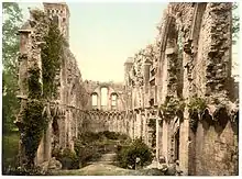 The outbreak of the First World War in 1914, in which the United Kingdom went to war against Germany and the Ottoman Empire, meant that Petrie and other staff members were unable to return to Egypt for excavation.[53] Instead, Petrie and Murray spent much of the time reorganising the artefact collections that they had attained over the past decades.[54] To aid Britain's war effort, Murray enrolled as a volunteer nurse in the Volunteer Air Detachment of the College Women's Union Society, and for several weeks was posted to Saint-Malo in France.[55] After being taken ill herself, she was sent to recuperate in Glastonbury, Somerset, where she became interested in Glastonbury Abbey and the folklore surrounding it which connected it to the legendary figure of King Arthur and to the idea that the Holy Grail had been brought there by Joseph of Aramathea.[56] Pursuing this interest, she published the paper "Egyptian Elements in the Grail Romance" in the journal Ancient Egypt, although few agreed with her conclusions and it was criticised for making unsubstantiated leaps with the evidence by the likes of Jessie Weston.[57]