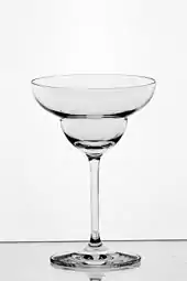 Margaritas may be served in a variety of glasses, most notably the margarita glass, a variant of the classic champagne coupe; this is particularly associated with blended fruit margaritas, and the glass is also used for dishes such as guacamole or shrimp cocktails. Margaritas are often served in a standard cocktail glass in formal settings. In contrast, in informal settings, particularly with ice, margaritas may be served in an old fashioned glass, cocktail glass, wine glass, pint glass, and even large schooners.