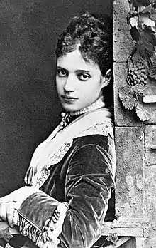 Dagmar was known for her beauty. Princess Mary Adelaide of Cambridge said that Dagmar was "sweetly pretty" and commented favorably on her "splendid dark eyes".[1] Her fiancee Nicholas Alexandrovich, Tsesarevich of Russia was enthusiastic about her beauty. He wrote to his mother that "she is even prettier in real life than in the portraits that we had seen so far. Her eyes speak for her: they are so kind, intelligent, animated."[1] When she was tsarevna, Thomas W. Knox met her at Grand Duke Vladimir Alexandrovich of Russia's wedding and wrote favorably about her beauty compared to that of the bride, Duchess Marie of Mecklenburg-Schwerin. He wrote that Dagmar was "less inclined to stoutness than the bride, she does not display such a plumpness of shoulder, and her neck rises more swan-like and gives fuller play to her finely formed head, with its curly hair and Grecian outline of face." He also commented favorably on "her keen, clear, and flashing eyes."[2]