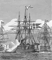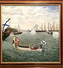 In the time leading up to Dagmar's departure to Russia, many festive events took place in Copenhagen, On 22 September 1866, Dagmar left Copenhagen on board the Danish royal yacht Slesvig escorted by the armoured frigate Peder Skram, and accompanied by her brother, Crown Prince Frederick. Hans Christian Andersen, who had occasionally been invited to tell stories to Dagmar and her siblings when they were children, was among the crowd which flocked to the quay in order to see her off.[24] The writer remarked in his diary, "Yesterday, at the quay, while passing me by, she stopped and took me by the hand. My eyes were full of tears. What a poor child! Oh Lord, be kind and merciful to her! They say that there is a brilliant court in Saint Petersburg and the tsar's family is nice; still, she heads for an unfamiliar country, where people are different and religion is different and where she will have none of her former acquaintances by her side."