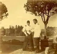 In 1901, Maria arranged Olga's disastrous marriage to Duke Peter Alexandrovich of Oldenburg.[59] For years Nicholas refused to grant his unhappy sister a divorce, only relenting in 1916 in the midst of the War. When Olga attempted to contract a morganatic marriage with Nikolai Kulikovsky, Maria Feodorovna and the tsar tried to dissuade her, yet, they did not protest too vehemently.[60] Indeed, Maria Feodorovna was one of the few people who attended the wedding in November 1916.[60]