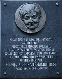 Gimbutas then taught at UCLA, where she became Professor of European Archaeology and Indo-European Studies in 1964 and Curator of Old World Archaeology in 1965.[12] In 1993, Gimbutas received an honorary doctorate at Vytautas Magnus University in Kaunas, Lithuania.