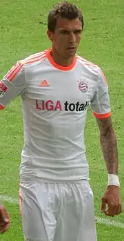 Mario Mandžukić (Croatian pronunciation: [mâːrio mǎndʒukitɕ];[3] born 21 May 1986) is a Croatian football coach and a former player who is an assistant coach of the Croatia national team. As a player, he played as a forward and became known for his aggressiveness, defensive contribution, and aerial prowess.