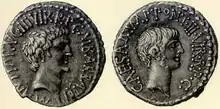 Led by Fulvia, the wife of Antony, the senators grew hostile towards Octavian over the issue of the land confiscations. According to the ancient historian Cassius Dio, Fulvia was the most powerful woman in Rome at the time.[111] According to Dio, while Publius Servilius Vatia and Lucius Antonius were the consuls for the year 41 BC, real power was vested in Fulvia. As the mother-in-law of Octavian and the wife of Antony, no action was taken by the senate without her support.[112] Fearing Octavian's land grants would cause the loyalty of the Caesarian veterans to shift away from Antony, Fulvia traveled constantly with her children to the new veteran settlements in order to remind the veterans of their debt to Antony.[113][114] Fulvia also attempted to delay the land settlements until Antony returned to Rome, so that he could share credit for the settlements. With the help of Antony's brother, the consul of 41 BC Lucius Antonius, Fulvia encouraged the senate to oppose Octavian's land policies.