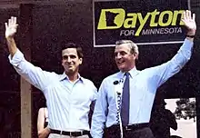 Mark Brandt Dayton (born January 26, 1947) is an American politician who served as the 40th governor of Minnesota from 2011 to 2019.[1] He served as a United States Senator representing Minnesota from 2001 to 2007 and as Minnesota State Auditor from 1991 to 1995. He is a member of the Minnesota Democratic–Farmer–Labor Party (DFL), which affiliates with the national Democratic Party.