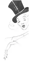 She often performed the first part of her show in one of her body-hugging dresses and a swansdown coat, and change to top hat and tails for the second half of the performance.[62] This allowed her to sing songs usually associated with male singers, like "One for My Baby" and "I've Grown Accustomed to Her Face".[57]