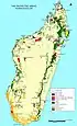 Marojejy National Park covers 55,500 ha (214 sq mi) and protects almost the entire massif, which ranges in elevation from 75 to 2,132 m (246 to 6,995 ft) at the summit.[2][17][19] The massif is part of a mountain chain that stretches from Tsaratanana in the northwest to the Masoala Peninsula in the south.[20] The crests of the massif form an east–west line with a series of distinct peaks along its irregular structure, which consists of parallel or divergent crest lines broken apart by steep and irregular slopes.[17] Rising 2,000 m (6,600 ft) over as little as 8 km (5.0 mi), the Marojejy Massif has some of the most precipitous terrain in Madagascar.[20] As a result of this sharp rise in elevation and rugged topography, it has a variety of microclimates and a visible change in habitat,[21][22] making it one of the few places in the world where cloud-covered rainforest rapidly transitions to high mountain shrubland over a distance that can be covered on foot.[2] Also due to the rugged topography, the vegetative mosaic varies between the crests and slopes of the massif, even at the same elevations. For example, crests and adjoining slopes often have less than 20% of their flowering plant species in common.[23]