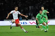 On 11 August 2010, Chamakh captained the national team for the first time in a 2–1 win over the Equatorial Guinea.[9] Three months later, he scored the opening goal in the team's 1–1 away draw to Northern Ireland.[91] After going scoreless for six months at international level, on 4 June 2011, Chamakh scored the second goal in a 4–0 win over Algeria in qualification for the 2012 Africa Cup of Nations.