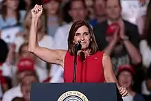 McSally was expected to run as the establishment candidate in the Republican primary, where her opponents included former State Senator Kelli Ward and former Maricopa County Sheriff Joe Arpaio.[46] McSally, a strong fundraiser, was the preferred candidate of national Republicans and Arizona Governor Doug Ducey. McSally's history of criticizing President Donald Trump drew rebuke from conservative groups including the Club for Growth, the Senate Conservatives Fund, and FreedomWorks.[47] McSally had previously distanced herself from Trump, choosing not to endorse him in 2016 and calling his comments about sexual assault "disgusting" and "unacceptable."[48] But in the lead-up to announcing her candidacy for Senate, McSally began to embrace Trump, running ads echoing his conservative immigration policy positions.[49] Politico wrote: "Martha McSally wants to make one thing clear before she launches an Arizona Senate campaign: She's a big fan of President Donald Trump."[50]