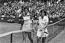 Navratilova began to wear glasses in 1985 and recalled that her vision had begun to deteriorate in 1984.[70][71] She continued to wear glasses for tennis for many years.[72][73] Few tennis players wear sunglasses regularly for tennis and Navratilova is one of them.[74] Although she achieved so much prior to using glasses, her glasses have become iconic.[75][76] Some sports writers have said that they made her, as with other top athletes who had imperfect health, seem more vulnerable and human.[77][78]