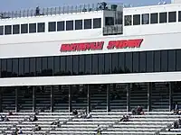Martinsville Speedway is a stock car racing short track in Ridgeway, Virginia, just south of Martinsville. The track was also one of the first paved oval tracks in stock car racing, being built in 1947 by partners H. Clay Earles, Henry Lawrence, and Sam Rice, nearly a year before NASCAR was officially formed.[2] It is also the only race track that has been on the NASCAR circuit from its beginning in 1948. Along with this, Martinsville is the only oval track on the NASCAR circuit to have asphalt surfaces on the straightaways and concrete to cover the turns. At 0.526 miles (847 m) in length, it is the shortest track in the NASCAR Cup Series. It is owned by NASCAR.