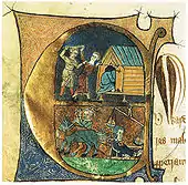 While all forms of wild game were popular among those who could obtain it, most meat came from domestic animals. Domestic working animals that were no longer able to work were slaughtered but not particularly appetizing and therefore were less valued as meat. Beef was not as common as today because raising cattle was labor-intensive, requiring pastures and feed, and oxen and cows were much more valuable as draught animals and for producing milk. Lamb and mutton were fairly common, especially in areas with a sizeable wool industry, as was veal.[68] Goat meat was consumed in some parts of medieval Europe. Far more common was pork, as domestic pigs required less attention and cheaper feed. Domestic pigs often ran freely even in towns and could be fed on just about any organic waste, and suckling pig was a sought-after delicacy. Just about every part of the pig was eaten, including ears, snout, tail, tongue, and womb. Intestines, bladder, and stomach could be used as casings for sausage or even illusion food such as giant eggs. Among the meats that today are rare or even considered inappropriate for human consumption are the hedgehog and porcupine, occasionally mentioned in late medieval recipe collections.[69] Rabbits remained a rare and highly prized commodity. In England, they were deliberately introduced by the 13th century and their colonies were carefully protected.[70] Further south, domesticated rabbits were commonly bred and raised both for their meat and fur. It is frequently and falsely claimed that they were of particular value for monasteries because newborn rabbits were allegedly declared fish (or at least not meat) by church officials, allowing them to be eaten during Lent.[71][72]