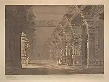 Sculptures in the 1000-pillar mandapa (choultry), around 1895.