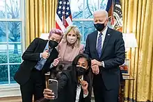 Rapinoe is an advocate for numerous LGBTQIA+ organizations, including the Gay, Lesbian & Straight Education Network (GLSEN) and Athlete Ally. In 2013, she received the Board of Directors Award from the Los Angeles Gay and Lesbian Center. Rapinoe was included in Time magazine's 100 Most Influential People of 2020.[11] In July 2022, Rapinoe received the Presidential Medal of Freedom from Joe Biden.[12]