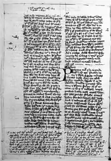It appears that some of the Dominican authorities already had concerns about Eckhart's teaching. The Dominican General Chapter held in Venice in the spring of 1325 had spoken out against "friars in Teutonia who say things in their sermons that can easily lead simple and uneducated people into error".[20] This concern (or perhaps concerns held by the archbishop of Cologne, Henry of Virneburg) may have been why Nicholas of Strasburg, to whom the Pope had given the temporary charge of the Dominican convents in Germany in 1325, conducted an investigation into Eckhart's orthodoxy. Nicholas presented a list of suspect passages from the Book of Consolation to Eckhart, who responded sometime between August 1325 and January 1326 with the treatise Requisitus, now lost, which convinced his immediate superiors of his orthodoxy.[20] Despite this assurance, however, the archbishop in 1326 ordered an inquisitorial trial.[19][21] At this point Eckhart issued a Vindicatory Document, providing chapter and verse of what he had been taught.[22]