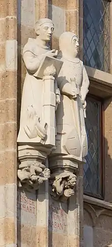 ![]() Sculpture of Meister Eckhart (left) and John I, Duke of Brabant (right) at Town Hall Tower, Cologne by Elisabeth Perger | |