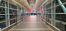 Although described as a satellite terminal, the terminal building is connected by an above-ground corridor to Terminal 2. Departures take place on the lower deck (similar to the A380 boarding lounges currently in use at Gates 9 and 11), with arrivals streamed on to the first floor to connect with the current first floor arrivals deck.