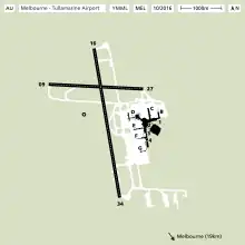 Melbourne Airport was originally called 'Melbourne International Airport'. It is at Tullamarine, a name derived from the indigenous name Tullamareena.[17] Locally, the airport is commonly referred to as Tullamarine or simply as Tulla to distinguish the airport from the other three Melbourne airports: Avalon, Essendon and Moorabbin.[21][22]