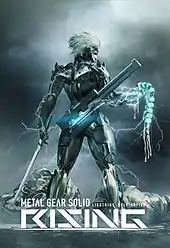 The game was first hinted during Kojima's keynote presentation at the 2009 Game Developers Conference in San Francisco where the presentation's end showed "The Next MGS" with Raiden as a cyborg standing next to the title.[38] Prior to the announcements of the game, Kojima Productions featured a countdown timer on their website until the day that Rising was announced. The series' traditional tagline of "Tactical Espionage Action" was also altered to "Lightning Bolt Action," a play on the fact that Raiden's name is Japanese for "thunder and lightning."[37][39] The game was officially announced at E3 2009 at the Microsoft press conference. A teaser trailer was released by Kojima, although he would be serving only as executive producer for the game, as all of his input was with Metal Gear Solid: Peace Walker.[40] The game was initially only announced for the Xbox 360 but was later confirmed for the PS3 and Windows platforms.[41] It would use a brand new game engine, rather than the Metal Gear Solid 4 engine.[42]