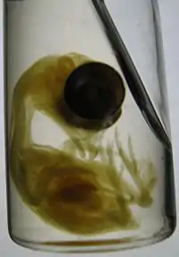 Methyl salicylate is also used as a bait for attracting male orchid bees for study, which apparently gather the chemical to synthesize pheromones,[21] and to clear plant or animal tissue samples of color, and as such is useful for microscopy and immunohistochemistry when excess pigments obscure structures or block light in the tissue being examined. This clearing generally only takes a few minutes, but the tissue must first be dehydrated in alcohol.[22] It has also been discovered that methyl salicylate works as a kairomone that attracts some insects, such as the spotted lanternfly.[23]
