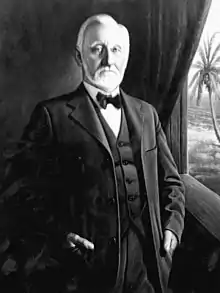 Miami Beach then initiated the planting of a coconut plantation along its shore in the 1880s, led by New Jersey entrepreneurs Ezra Osborn and Elnathan T. Field, but the venture failed.[10] One of the investors in the project was agriculturist John S. Collins, who achieved success by buying out other partners and planting different crops, notably avocados, on the land that would later become Miami Beach. In fact, the pine trees on today's Pinetree Drive served as an erosion buffer for Collins' plantations.[11] Meanwhile, across Biscayne Bay, the City of Miami was established in 1896 with the arrival of the railroad and developed further as a port when the shipping channel of Government Cut was created in 1905, cutting off Fisher Island from the south end of the Miami Beach peninsula.