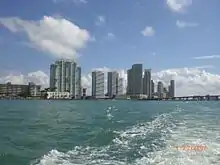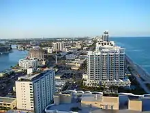 ![]() The southern portion of Miami Beach, known as South Beach (foreground), and Downtown Miami (background) in April 2006 | |