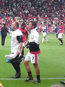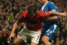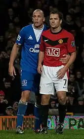 Owen scored his first goal for United on his debut, scoring an 84th-minute winner after coming on as a substitute in a pre-season friendly against a Malaysian XI;[107] he followed this up by scoring three more goals in United's pre-season games.[108][109] Owen made his league debut for United when he came on as a substitute against Birmingham City on 16 August in a 1–0 win,[110] and scored his first competitive goal in a Manchester United shirt against Wigan Athletic on 22 August in a 5–0 away win.[111] On 20 September, Owen scored his first goal at Old Trafford, in the sixth minute of stoppage time against local rivals Manchester City to give United a 4–3 derby win. This meant that Owen had now scored in his fourth derby, after scoring in the Merseyside derby, El Clásico and the Tyne–Wear derby in previous years.[112] Owen struggled to recall the moments immediately after the goal, and said that it ranked as one of his most important.[113] On 27 October, Owen scored a goal in the 2–0 away win against Barnsley to qualify United past the fourth round of the League Cup. On 3 November, Owen scored his first Champions League goal for Manchester United, as he grabbed United's first in the 3–3 draw against CSKA Moscow.[114] Owen's seemingly slim chances of earning a place in Fabio Capello's England squad for the 2010 World Cup finals in 2010 received a boost when on 8 December 2009, Owen scored his first hat-trick for Manchester United in a 3–1 away win against VfL Wolfsburg in the Champions League, his first hat-trick since 2005.[115] On 28 February 2010, Owen scored United's first goal in their 2–1 victory over Aston Villa in the 2010 League Cup final, but had to be substituted after pulling up on 42 minutes. Originally thought to be a minor injury, on 5 March it was announced Owen required surgery on his hamstring, ruling him out for the rest of the season.[116]