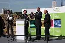 Platini confirmed that he would run for the UEFA presidency in July 2006.[37] In the election in Düsseldorf on 26 January 2007, he defeated Lennart Johansson, who held the post for the previous 16 years, by 27 votes to 23.[38] Platini based his speech on virtues of solidarity and universality.