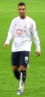 Mido was signed by Tottenham on an 18-month loan deal on 28 January 2005.[78] He scored two goals on his Tottenham debut against Portsmouth on 5 February 2005.[79] He scored 3 goals in 11 appearances during the 2004–05 season for Tottenham.[80] Mido announced plans in July 2005 to launch his own football academy in Egypt, which had the aim of nurturing the country's young talent.[81] In January 2006, he expressed that he did not wish to return to Roma at the end of the 2005–06 season, but rather sign permanently with Tottenham.[82] Tottenham manager Martin Jol said that the club were confident of signing Mido on a permanent deal due to his good performances,[83] but later admitted Tottenham may be defeated in keeping Mido, with other clubs interested in signing him.[84] His permanent move was further put into doubt in April 2006, after he suffered a new injury problem.[85] He suffered abuse from a small section of the Southampton and West Ham United fans in 2005. West Ham manager Alan Pardew apologised to Mido for the abuse by the fans.[86][87] He finished the 2005–06 season with 11 goals in 27 games, meaning he was Tottenham's second highest goalscorer.[88] Tottenham confirmed in May 2006 that Mido would be returning to Roma.[89]