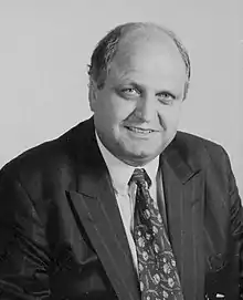 He led the Official Opposition until 1993 and was spokesman on Foreign Affairs and Trade as well.[8] He attempted a rejuvenation of Labour's ranks with several important portfolio shifts, including giving the finance portfolio to Michael Cullen, designed to blunt the growth of the newly formed Alliance party (which was made up largely of Labour dissidents).[40] He then led Labour in the 1993 election where he managed to gain 16 seats, coming within two seats of clinching an unlikely victory just three years after the landslide 1990 defeat.[41] On the night of the 1993 election he delivered a televised speech (dubbed the "long, cold night" speech) later described by political scientist Jack Vowles as "damaging" and "more appropriate for a decisive Labour win than a narrow defeat."[42]
