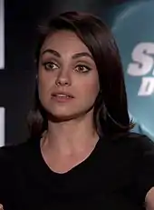 In 2012, Kunis co-starred with Mark Wahlberg in Ted, her most commercially successful film to date. The film was directed and co-written by Family Guy creator Seth MacFarlane. Kunis played the girlfriend of Wahlberg's character. When MacFarlane first conceived the project, he considered Kunis too young for the role. However, the film remained in development for several years and when it was finally ready to begin production, he ended up casting her.[103] Ted has received generally positive reviews from critics[104] and was a commercial success, grossing $549 million worldwide.[105] Drew McWeeny of HitFix wrote that Kunis "brings some lovely subtle grace notes to a role that easily could have just been 'the pushy girlfriend'".[106]