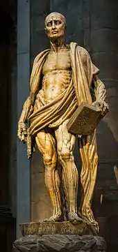- At the left of the altar is located the most famous statue of all the cathedral, the Saint Bartholomew Flayed (1562), by Marco d'Agrate, the saint shows his flayed skin thrown over his shoulders like a stole.[21]