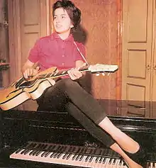 Mina's TV appearances in 1959 were the first for a female rock and roll singer in Italy. Her loud syncopated singing earned her the nickname "Queen of Screamers".[14] The public also labeled her the "Tigress of Cremona" for her wild gestures and body shakes. When she turned to light pop tunes, Mina's chart-toppers in West Germany in 1962 and Japan in 1964 earned her the title of the best international artist in these countries.[15][16][17] Mina's more refined sensual manner was introduced in 1960 with Gino Paoli's ballad "This World We Love In", which charted on the Billboard Hot 100 in 1961.