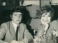 In 1960, Mina made her Festival della canzone italiana in Sanremo debut with two songs. She turned to slow emotional love songs for the first time. The song "È vero" ("It's True") reached No. 8 on the Italian charts.[35] Gino Paoli's song "Il cielo in una stanza" ("The Sky in a Room") marked the beginning of the young singer's transformation from a rock and roll shrieker to a feminine inspiration for cantautori.[36] The idea for the song "Love can grow at any moment at any place" had come to Paoli while lying on a bed and looking at the purple ceiling.[37] The single topped the list of annual sales in Italy[12] and reached the Billboard Hot 100[14] as "This World We Love In". Video performances of the song were included in the musicarellos Io bacio... tu baci and Appuntamento a Ischia, and in 1990, in the soundtrack of the film Goodfellas.