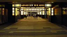 The Minskoff Theatre is on the third floor of One Astor Plaza, also known as 1515 Broadway, along Times Square in the Midtown Manhattan neighborhood of New York City.[1] Der Scutt designed the Minskoff,[2][3] with Ben Schlanger as a consulting architect.[3][4] Jo Mielziner was the consultant for the theater's original operator, Albert Selden.[3][5] The Minskoff, Gershwin, Circle in the Square, and American Place theaters were all constructed under the Special Theater District amendment of 1967 as a way to give their respective developers additional floor area.[2][6]