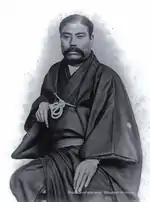 The Mitsubishi company was established as a shipping firm by Iwasaki Yatarō (1834–1885) in 1870 under the name "Tsukumo Shokai" (九十九商会).[3] In 1873, its name was changed to Mitsubishi Shokai; Mitsubishi (三菱) consists of two parts: "mitsu" (三) meaning "three" (as in the three oak leaves from the crest of the Yamauchi or Tosa family that ruled over Yatarō's birthplace and employed him) and "hishi" (菱, which becomes "bishi" under rendaku) meaning "water caltrop", and hence "rhombus", which is reflected in the company's logo. It is also translated as "three diamonds".[4]