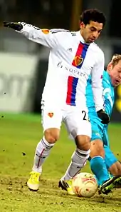 Swiss Super League club Basel had been monitoring Salah for some time,[39] so following the Egyptian Premier League suspension, the club organised a friendly match with the Egypt U-23 team.[40] The match took place on 16 March at the Stadion Rankhof in Basel, and despite only playing the second half, Salah scored twice, helping the Egyptians to a 4–3 win.[41] Basel subsequently invited Salah to remain in the city for a week's training. On 10 April 2012, it was announced that Salah had signed for Basel on a four-year contract starting from 15 June 2012.[42][43][44] He initially found it difficult to settle, having arrived unable to speak the language and been signed as a replacement for fan-favourite Xherdan Shaqiri (whom he would later play alongside at Liverpool).[45] Salah scored on his unofficial debut on 23 June 2012 against Steaua București during a friendly match, a 4–2 defeat.[46] He made his official Basel debut in a UEFA Champions League preliminary stage match against the Norwegian club Molde on 8 August, coming on as a substitute in the 74th minute.[47] He made his league debut on 12 August against Thun, playing the full match.[48]