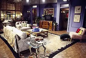 Early in the series, Monica's apartment is established as one of the show's two primary locations.[21] In the pilot, the apartment number is 5, which was changed to 20 in subsequent episodes after the writers determined that Monica actually lived on a much higher floor.[22] Season three's "The One Where No One's Ready" takes place entirely in Monica's apartment because the show's budget was not large enough to accommodate additional sets or guest stars at that time.[23] In the series finale, Phoebe certifies that each character shared Monica's apartment at least one point during their lives.[24]