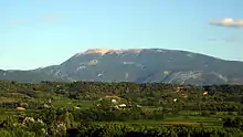 Mont Ventoux (French: [mɔ̃ vɑ̃tu]; Provençal: Ventor [venˈtu]) is a mountain in the Provence region of southern France, located some 20 km (12 miles) northeast of Carpentras, Vaucluse. On the north side, the mountain borders the department of Drôme. At 1,910 m (6,270 ft), it is the highest mountain in the region and has been nicknamed the "Beast of Provence",[2] the "Giant of Provence",[3][4] or "The Bald Mountain".[4] It has gained fame through its inclusion in the Tour de France cycling race;[4] in 2009 it was the scene of the first penultimate-day mountain top finish in the Tour de France, with Alberto Contador sealing his yellow jersey.