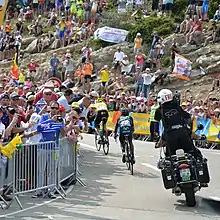 In 2016, the stage to Mont Ventoux was shortened by 6 km (3.7 mi) the day before, after a weather forecast of high winds at the summit. The stage then finished at Chalet Reynard at 1,435 m (4,708 ft), with approximately 10 km (6 mi) of ascent up the mountain.[16] This stage also featured a motorcycle-induced crash which damaged Chris Froome's bike, prompting him to jog some 100 metres up the mountain until he was able to get a neutral service bike (as his team car was too far back at the time), which did not fit him properly.
