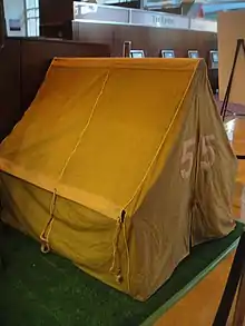 Academic James MacDowell evaluated the film's style as displaying "the director's trademark flat, symmetrical, tableau framings of carefully arranged characters within colorful, fastidiously decorated sets" with "patent unnaturalism and self-consciousness".[43] Considering the emphasis on symmetry (as opposed to other photographic composition strategies such as the rule of thirds) and color, authors Stephanie Williams and Christen Vidanovic wrote, "Almost every frame in this movie could be a beautiful photograph."[44] Critic Robbie Collin added that besides the symmetry, many shots are "busy with detail, and if something visually dull has to happen, Anderson embellishes it: when Sam and Suzy retreat to have a quiet heart-to-heart, he places their silent conversation on the left hand side of the frame and an enthusiastic young trampolinist on the right".[45] Roger Ebert identified the color scheme as emphasizing green in the grass, khaki in the Scouts camp and uniforms, and some red, creating "the feeling of magical realism".[46]
