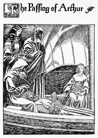 "And Sir Bedivere stood upon the shore and looked upon the face of King Arthur as it lay within the lap of Queen Morgana, and he beheld that the face of King Arthur was white like to the ashes of wood, wherefore he wist that he was dead."[96]