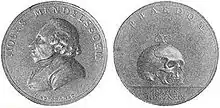 In March 1771 Mendelssohn's health deteriorated so badly that Marcus Elieser Bloch, his doctor, decided his patient had to give up philosophy, at least temporarily.[15] After a short and restless sleep one evening, Mendelssohn found himself incapable of moving and had the feeling of something lashing his neck with fiery rods, his heart was palpitating and he was in an extreme anxiety, yet fully conscious. This spell was then broken suddenly by some external stimulation. Attacks of this kind recurred. The cause of his disease was ascribed to the mental stress due to his theological controversy with Lavater.[16] However, this sort of attack, in milder form, had presumably occurred many years earlier. Bloch diagnosed the disease as due to 'congestion of blood in the brain' (a meaningless diagnosis in modern medical practice as such congestion is anatomically impossible), and after some controversy this diagnosis was also accepted by the famous Hanoverian court physician, Johann Georg Ritter von Zimmermann, an admirer of Mendelssohn.[16] In retrospect, his illness might be diagnosed as a heart-rhythm-problem (such as atrial fibrillation) and/or a mild form of familial dysautonomia, a hereditary disease of Ashkenazi Jews, which often brings with it a curvature of the spine and epilepsy-like symptoms in times of stress.[17]